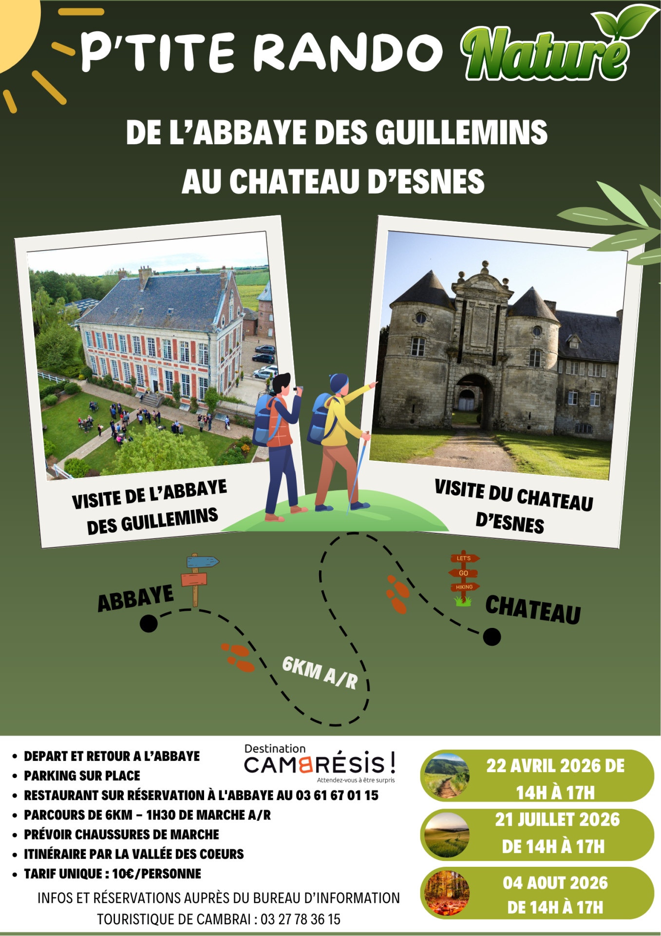 Partez pour une escapade familiale alliant patrimoine et nature ! Depuis l’Abbaye des Guillemins, suivez le sentier de la Vallée des Cœurs jusqu’au Château d’Esnes. Deux joyaux du Cambrésis à découvrir au fil d’une balade ponctuée de petites visites. Un après-midi au vert, entre histoire, paysages bucoliques et poésie des lieux.